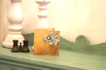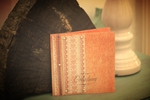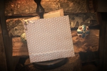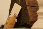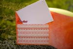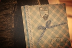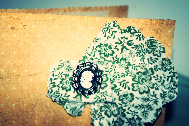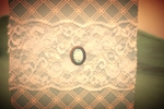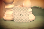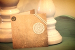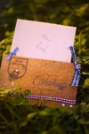 Beschreibung: Einladung besteht aus edlem Einladungspapier, Stoff und einer Brosche.