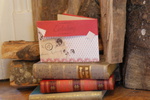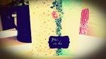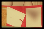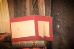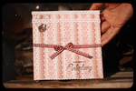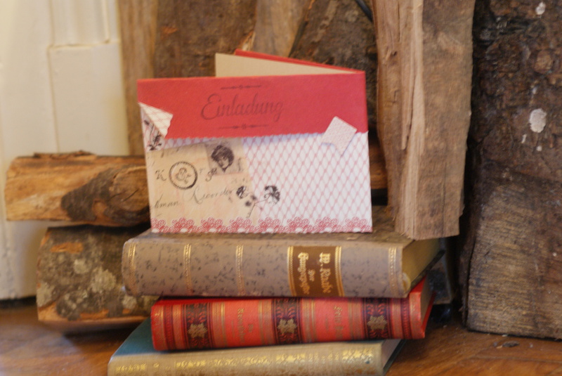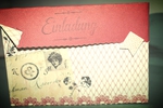 Beschreibung: Einladung ist ein Täschchen und das Einladungsbüchlein ist aus dem Täschchen herauszuziehen.