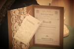 Beschreibung: Einladung besteht aus edlem doppelseitig bedruckten Einladungspapier, echter Spitze und einer Brosche